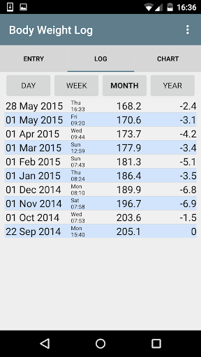 Un'applicazione del log di tracciamento del peso corporeo semplice, senza pubblicità, progettato per una rapida voce dei dati.