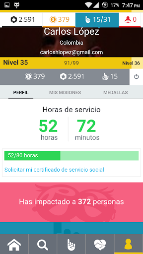Cada vez que hagas una misión Real Hero contabiliza el tiempo que inviertes en ayudar a la sociedad el cuál podrás convertir en un certificado de servicio social.