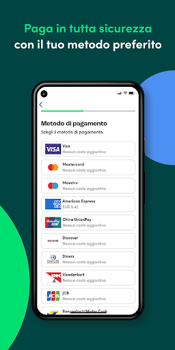 Paga la tua ricarica prepagata o le carte regalo a modo tuo scegliendo tra oltre 30 metodi di pagamento affidabili, tra cui Apple Pay, PayPal, Maestro, Visa e American Express. Per rendere il tutto ancora più conveniente, puoi scegliere tra oltre 60 valute nell’app Recharge.com.