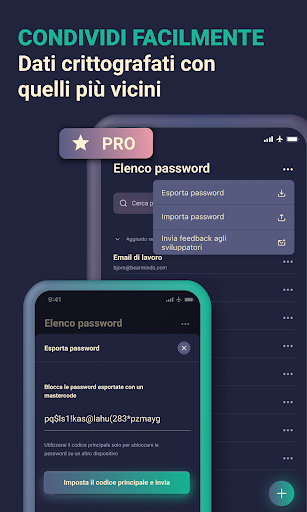 • Condivisione sicura: condividi record crittografati con altri utenti PassKeep