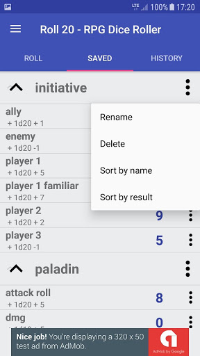 -You can sort you favourite rolls by their name and last result for making for example great initiative lists