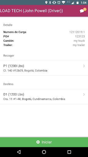 Load Technologies Mobile Application, used for driver to manage current loads and obtain tracking in real-time.