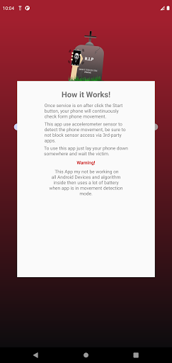 Una volta che questa app è in esecuzione, il tuo telefono lo faràurlare quando viene spostato.Per utilizzare l'app semplicemente posare il telefono da qualche parte, fai clic sul pulsante ON, quindi spegnere lo schermo e attendere la vittima.