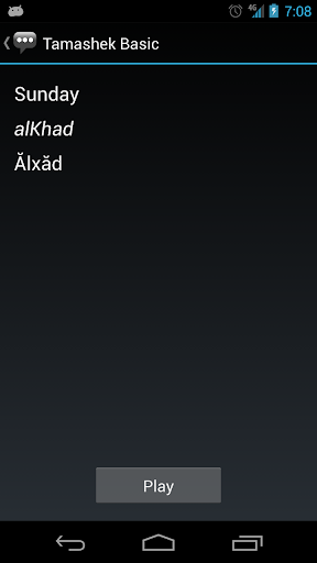 3. On the phrase detail page, the phrase itself is shown alongside its pronunciation and the equivalent English phrase. Press the Play button to hear the audio pronunciation by a native speaker.