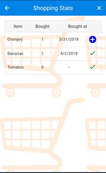 - Manage your everyday shopping with ease at the statistics section that shows the quantity of items purchased and last purchase date of each item.