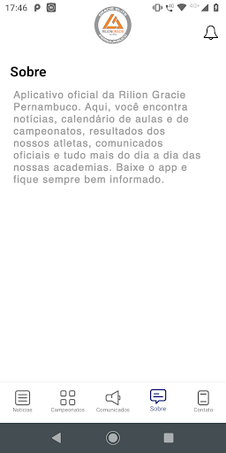 Aplicativo oficial da Rilion Gracie Pernambuco. Aqui, você encontra notícias, calendário de aulas e de campeonatos, resultados dos nossos atletas, comunicados oficiais e tudo mais do dia a dia das nossas academias. Baixe o app e fique sempre bem informado.