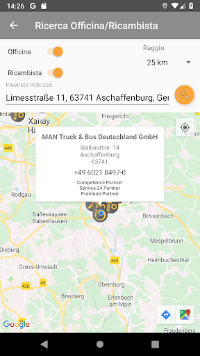 Trova facilmente un’officina o un rivenditore di ricambi nelle vicinanze, incluse tutte le informazioni di contatto necessarie. E’ possibile contattare l’officina o il ricambista direttamente tramite i dettagli di contatto visualizzati e pianificare direttamente il percorso.