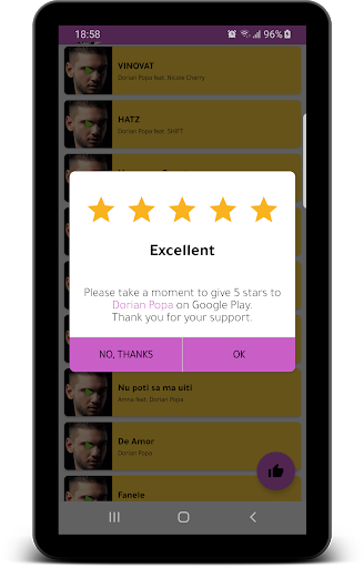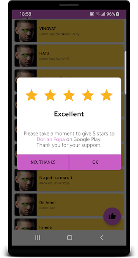 Aplicația "Dorian Popa melodii fara net" conține cele mai bune melodii ale lui "Dorian Popa", fără internet.