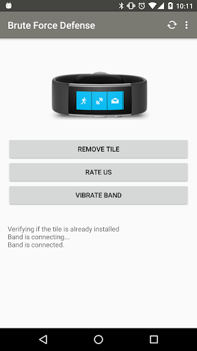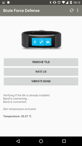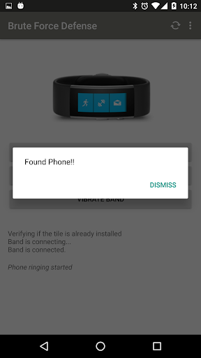 There are days when you don't find your phone in the house or somewhere else. It might be around you but you can't find it. You don't have time to open Android Manager and make it ring. Won't it be easier and handy to just press a button and find your phone. Brute Force Defense does it for you. You use your Microsoft band to ring your phone. Brute Force Defense allows you to Lock your phone if you left it unlocked. It also allows you to turn the silent mode on if you are somewhere important and can not afford to let your phone ring. Over that get some your skin temperature information and personalize your band with a free wallpaper. Just pick up your phone, add the Brute Force Defense Tile to your band and keep your phone safe.
