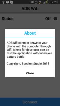 ADB Wifi connect between your phone with the computer through wifi. It help for developer can be test the application without makes battery bottle.