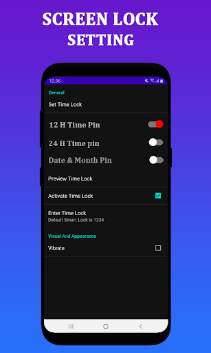 👉Enable or disable Vibration on Screen lock with Date PIN and Time PIN.