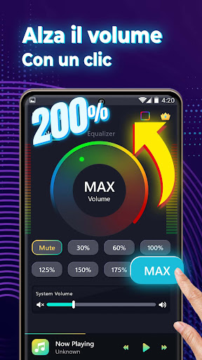 Il suono può essere aumentato fino al 200% dalla musica, dagli altoparlanti, dalle registrazioni, dall'audio nel video e da tutti i suoni del tuo dispositivo. Il volume dell'altoparlante supporta l'aumento del volume per cuffie, Bluetooth e altoparlanti.