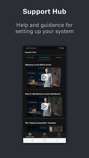 Evolution Wireless Digital Smart Assist rende la configurazione e l'uso di Sennheiser Evolution wireless digitale semplice e veloce. Utilizza il tuo smartphone o tablet per connettersi tramite Bluetooth per un'efficace configurazione e panoramica del tuo nuovo sistema wireless.