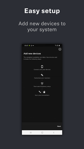 Dopo l'installazione dell'app, avrai bisogno solo di altri 60 secondi per impostare e in esecuzione il sistema, compresa l'accoppiamento e l'allocazione di frequenza automatizzata.