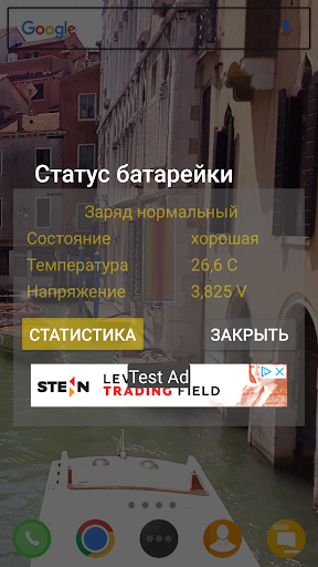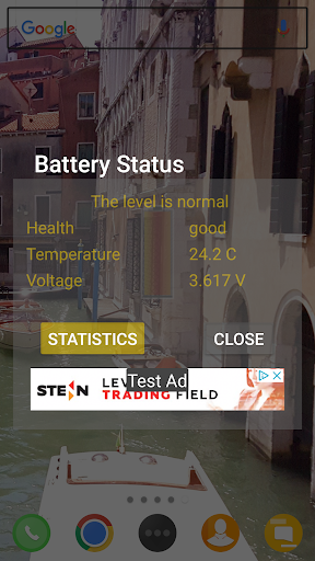 This indicator can be placed in multiple positions so as to continuous view of the battery level. It can be resized to get horizontal or vertical scale. There is no indication of percentage which only distracts the user. Tapping on the widget opens the main screen with 4 properties: general level assessment, health, temperature and voltage. Further you can use a button to reach Android's statistics for the battery usage in the current battery cycle.