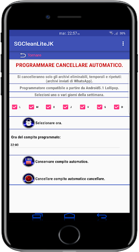 Solamente segni il giorno o giorni all'ora desiderata e SGClean si incaricherà di liberare spazio senza che l'utente debba fare nient'altro.