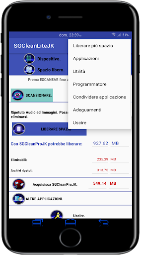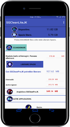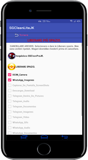 SGClean risolve comodamente il problema del messaggio che c'esce ogni dato periodo di tempo nella marca da bollo: "POCO SPAZIO DI IMMAGAZZINAMENTO." Liberi spazio.