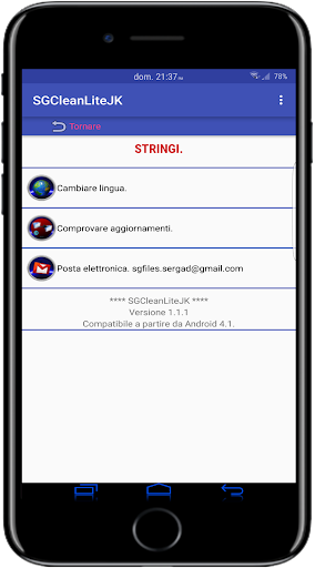 SGClean. Sviluppato per dispositivi Android a partire da 4.1 d'ora in poi.