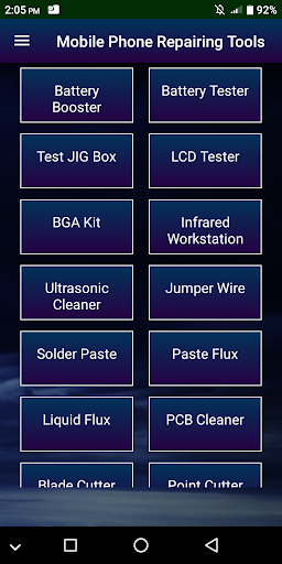 Mobile Phone Repairing Tools This apps includes to mobile Mobile Repairing Tools. Mobile Repairing Course includes Android mobile repairing guide and disassembling process, Help, Tips, Pictures Solution Battery checking etc. Mobile phone faults and solutions Mobile Repairing Course guide app covers the complete full course in Mobile Repair and Cell phone repairing.