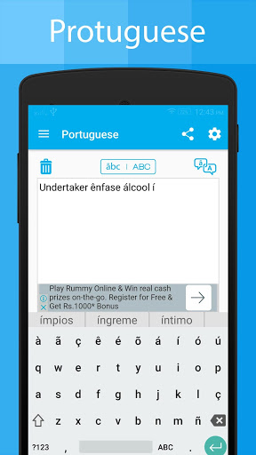 • Installare la tastiera e il traduttore portoghese. Abilita la tastiera portoghese Quindi selezionare la tastiera portoghese e il traduttore dall'opzione della tastiera di modifica.