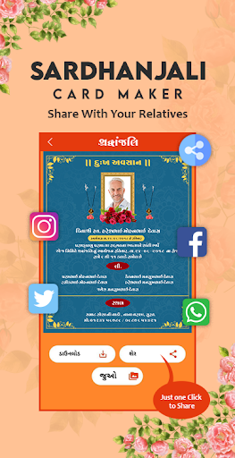 La scheda realizzata utilizzando questa app salverà nella Galleria dei dispositivi e inoltre, consente anche un modo semplice per condividere la carta nei social media in modo che i tuoi parenti sapranno dell'incidenza.