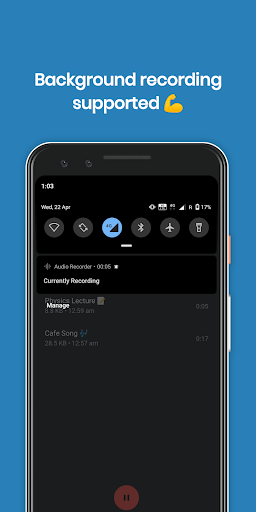 Audio Recorder is free, full-featured, beautifully designed and easy to use audio recording app for android. Its also AD free so that you have a seamless experience.
