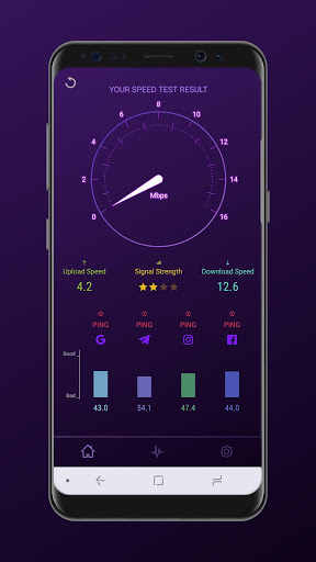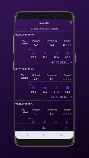 - Track your past internet speed tests including download and upload speed, signal strength, ping, network name and test date with detailed reports in your personal result history