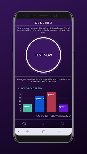 If you think of your internet speed is not enough faster than you were promised by your current mobile operator or asking yourself what is the real speed of my internet connection, it is now time to download Cell Info application to find out your internet speed provided by your current mobile carrier and also different internet service providers` internet speeds in your location.