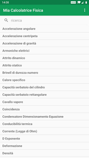 Mia Calcolatrice Fisica contiene i seguenti 134 calcolatori: