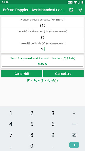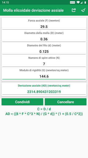 Valori e risultati calcolati possono essere condivisi con social media, posta, messaggi e altre app di condivisione.