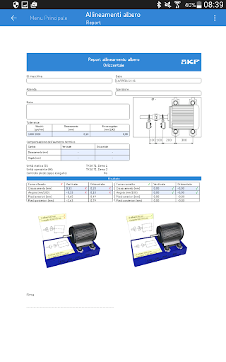 • Report di allineamento automatici: report sull'allineamento creati automaticamente offrono una panoramica completa della procedura di allineamento e dei risultati. I report possono essere personalizzati con note aggiuntive, un'immagine della macchina e la firma e possono essere condivisi via e-mail o via servizi basati su cloud.