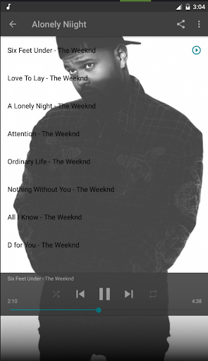 The Weeknd Music Of Album is a fun application to help you listen to offline music without the Internet. In addition, The Weeknd Music Of Album is also a collection of The Weeknd music albums. The high quality MP3 songs performed by The Weeknd are selected by us and put into The Weeknd Music Of Album application. This is the best and most complete Offline music app for The Weeknd's lifetime albums we've compiled.