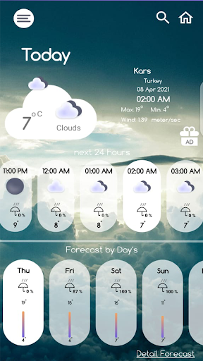 ★ Controllare le 24 ore di previsione giornaliera con le opzioni dei dettagli.