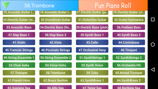 Play various instruments with Fun Piano Roll Fun Piano Roll * 128 instruments * 88 rolls * Easily expand and decrease the roll size by pressing and - button * Easily move the roll position by dragging Enjoy!!! ---- 개발자 연락처 : Tel) 82-505-441-5486