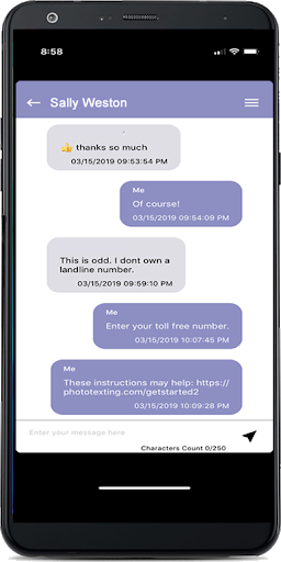 Photo Texting is your texting app that lets you know of all new text messages you have sent through your existing landline or toll free business numbers. Even if you are not near your computer, open the app to read messages and reply using your business numbers.