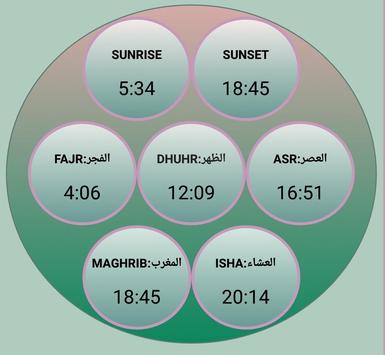 • Shows Five Muslim Prayer Times: Fajr,Sunrise, Dhuhr, Asr, Sunset, Maghrib and Isha.