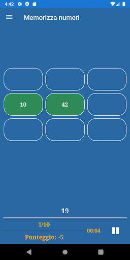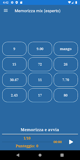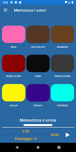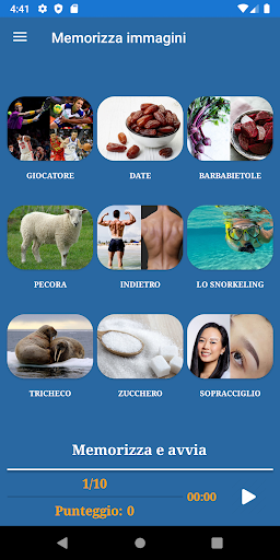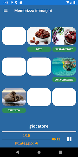 L'applicazione include i seguenti giochi di memoria: