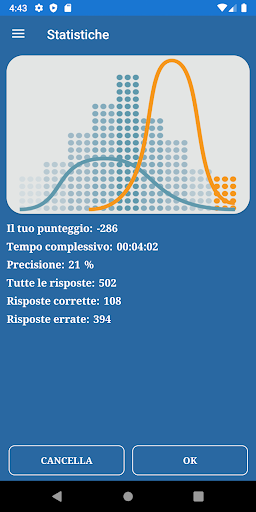 Puoi visualizzare le statistiche scegliendo la voce di menu nel menu principale. Le informazioni includono il punteggio complessivo, il tempo complessivo, l'accuratezza, il conteggio delle risposte esatte e errate.