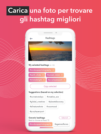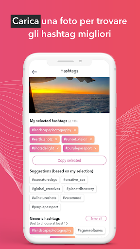 ✔ Carica una foto per vedere quali sono gli hashtag proposti. Tutti gli hashtag vengono generati automaticamente e