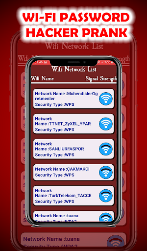 WiFi Password Hacker Prank è un'app per scherzi. È il simulatore di hacking WiFi e finge solo di rompere in rete WiFi protetta. Tutte le password vengono generate casualmente e non sono una vera password rubata dal router.