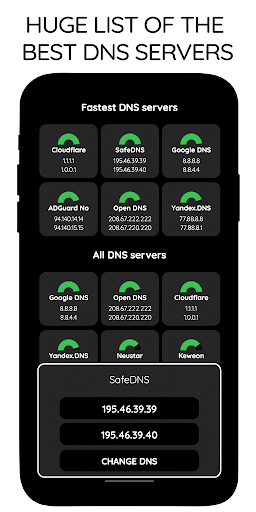 Velocità! DNS Changer ti aiuterà a cambiare DNS molto facilmente e in sicurezza. Il nostro Changer DNS funziona con Wi-Fi che Internet mobile (3G, 4G, 5G).