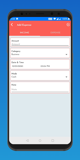 - Aggiungere il tuo reddito o le tue spese Aggiungere il tipo di pagamento IE Cash, Bank, Net Banking, Bank, Net Banking, carta di debito e carta di credito