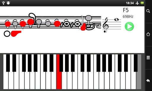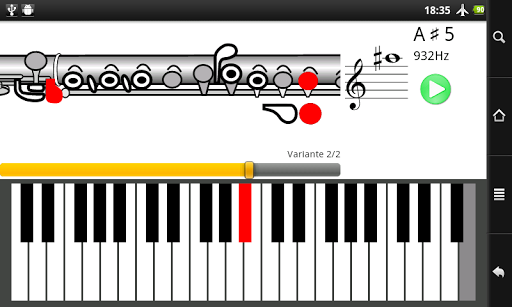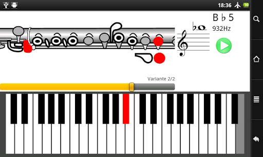 Premendo il tasto play puoi far suonare l'Android il tono selezionato e cercare di ripeterlo sul tuo flauto per sentire se sei riuscito.