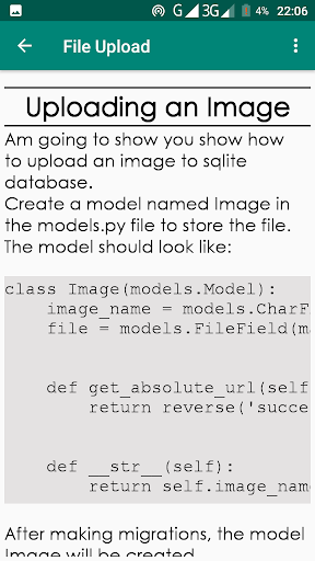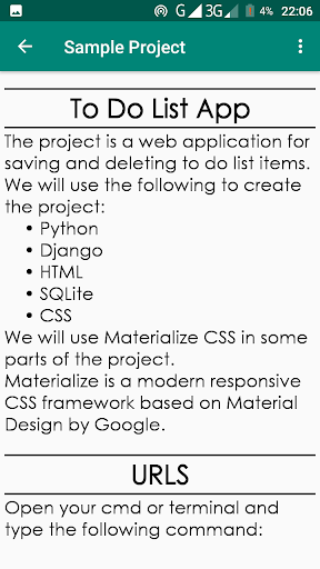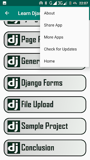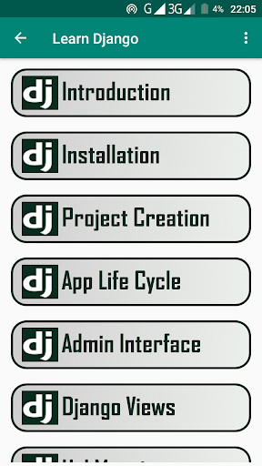 L'app contiene tutorial Django ricchi di contenuti.Django è un famoso quadro Python per lo sviluppo e la distribuzione di applicazioni Web sicure.L'app ha esempi per aiutarti a capire Django.