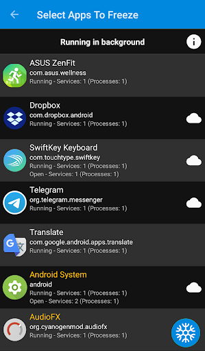 • Freeze both user and system apps