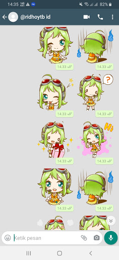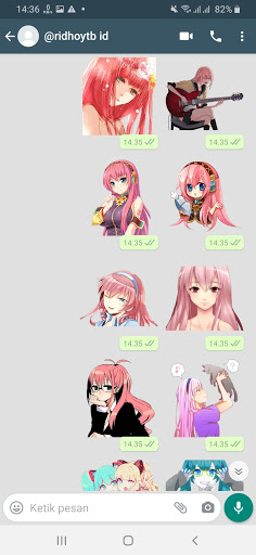 Chat Stiker WA Anime Vocaloid Sticker per Wastickerapps Download gratuito, è possibile inviare e condividere i messaggi adesivi Adesivo per gli amici e la famiglia Non è il costo per inviare i messaggi adesivi di WhatsApp localmente o a livello internazionale, quindi non devi pagare per ogni messaggio di adesivo Whatsapp inviato. Chatta con i tuoi amici e familiari in tutto il mondo.