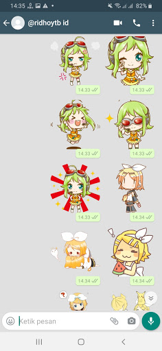 Sei un amante del vocaloide? Che cosa stai aspettando, usi immediatamente carino Stiker Emoji Stiker WA Anime Vocaloid Sticker per Wasteickerapps per inviare e condividere messaggi di adesivi ai tuoi amici e familiari sotto forma di emoji, passare ora da messaggi SMS / MMS a WhatsApp. Adesivi Whatsapp sono usati per emettere immagini espressive che sono meme belle, divertenti, fresche, interessanti, carine e divertenti.