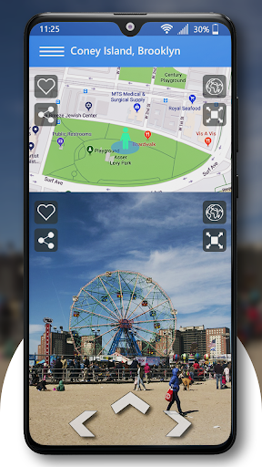 Vista stradale: Panorama, Mappa e navigazione della Terra mostra anche la tua posizione attuale sulla mappa in diretta. Questo mostra anche il tuo indirizzo e la posizione della tua latitudine e longitudine sulla mappa della Terra. Puoi anche condividere il tuo indirizzo o la posizione corrente sulla mappa con i tuoi amici.