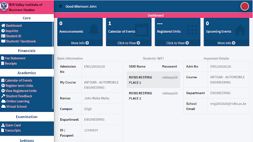 * Portale studentesco - per studenti in Rift Valley Institute of Business Studies per ricevere servizi online.