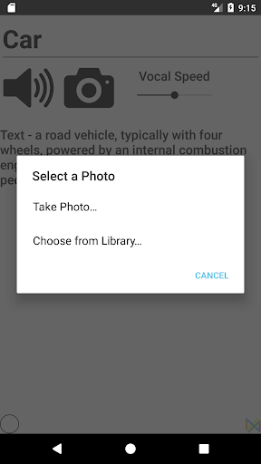 Ora puoi estrarre il testo da un'immagine che puoi scegliere dalla tua libreria di immagini o scattare una foto e quindi estrarre il testo da esso.L'app in ritardo parla il testo per te.